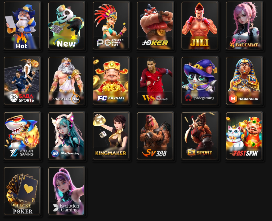 แม้ชื่อจะเน้นไปทางค่าย PG แต่ในความเป็นจริง แพลตฟอร์มนี้มักรวบรวมค่ายเกมชั้นนำไว้หลากหลาย เช่น: